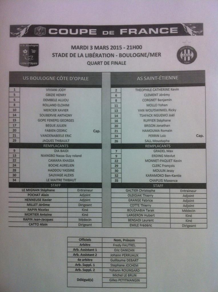 [Coupe de France]Boulogne/ASSE, la composition des équipes