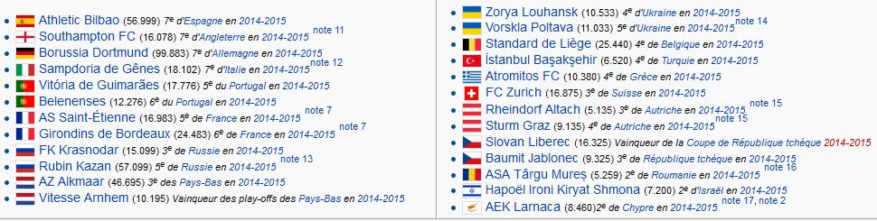 Le programme du 2ème tour de la Ligue Europa, saison 2015/2016 : La liste des clubs qualifiés pour le tour de barrage de la Ligue Europa, saison 2015/2016 : L'adversaire de l'ASSE est donc dans cette liste complète.