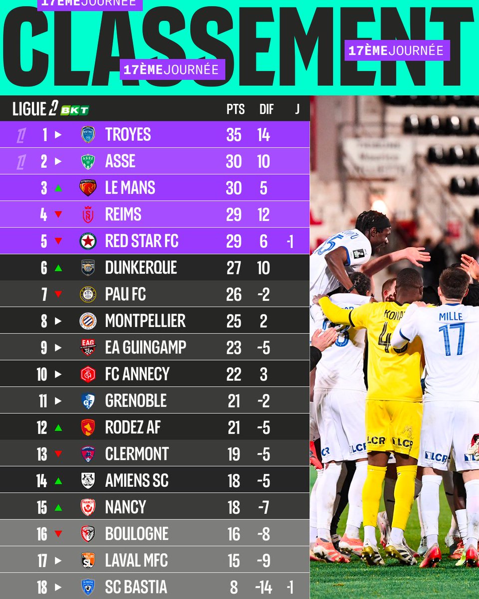 | Au 21ème siècle, 35 points après 17 journées riment presque toujours avec montée : 14 cas sur 15. Seul Dijon, en 2014/15, a fait exception à la règle (4e)... |