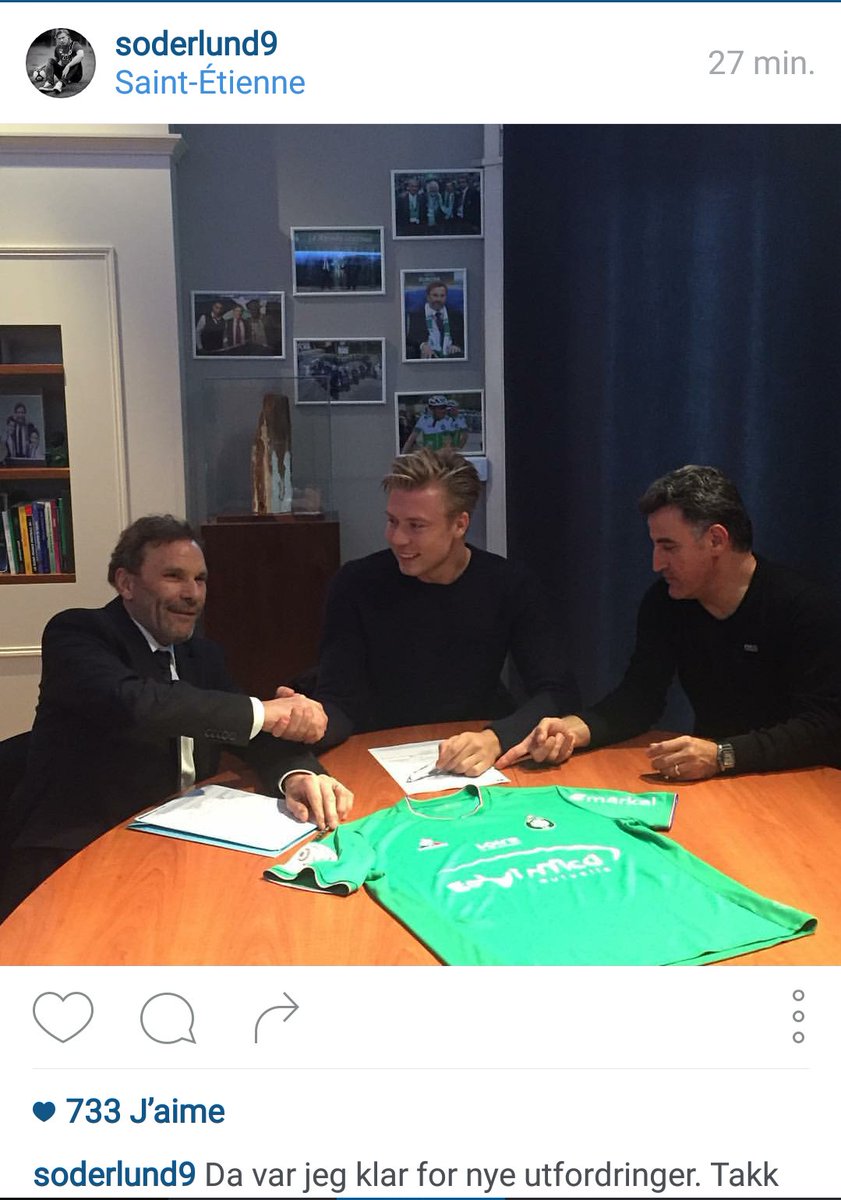Alexander Söderlund vient de publier une photo sur son compte Instagram où on le voit serrer la main àRoland Romeyer après sa signature àl'ASSE. Lundi 04 Janvier 2016 11:22 [Coupe de France]Tous les qualifiés pour les 16èmes de finale ->